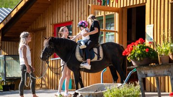 • Auch im Ulrichshof im Bayerischen Wald schlagen Kinderherzen höher: Im hoteleigenen Reitstall warten Ponyreiten, Mini-Pferdekunde und viele Streicheleinheiten auf kleine Reiterinnen und Reiter.
