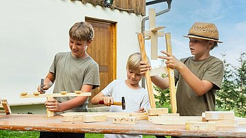 Im Familienalmsommer werden von Juli bis Mitte September viele spannende Aktivitäten in der Natur angeboten. Dazu gehören Fischen, Felsenklettern, Bogenschießen, Reiten, Lagerfeuer und Almbesuch. Ihr könnt auch einmal täglich mit der Sommerrodelbahn fahren und den Klettergarten besuchen (ab drei Nächten inklusive).