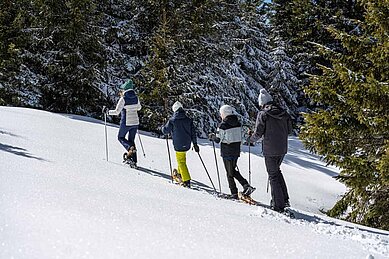 Ihr könnt auch die sechs ausgeschilderten malerischen Schneeschuhwanderrouten erkunden und euch auf ein abwechslungsreiches Naturerlebnis freuen – auf Wunsch auch geführt.
