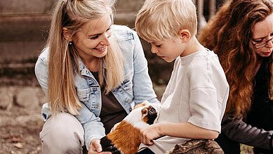Das tägliche Füttern der kleinen und großen Tiere, wie Meerschweinchen, Hasen, Enten, Hühner, Hunde, Katzen, Ziegen, Schweine und Pferde lässt Kinderaugen strahlen. Die süßen Minischweine haben die Kinder direkt in ihr Herz geschlossen.