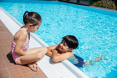 Spielt das Wetter einmal nicht so mit, geht es ab in den Schwimmbadbereich. Ein Indoor-Pool und ein beheizter Outdoor-Pool sorgen bei den Kindern ganzjährig für unbegrenzten Wasserspaß.