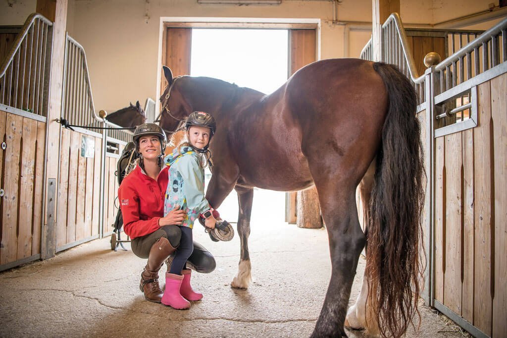 Ob Reiten, Gespannfahren oder Springreiten – hier kommen wirklich alle Pferdefreunde auf ihre Kosten. Natürlich darf auch beim Putzen, Satteln und Ausmisten gern mitgeholfen werden.