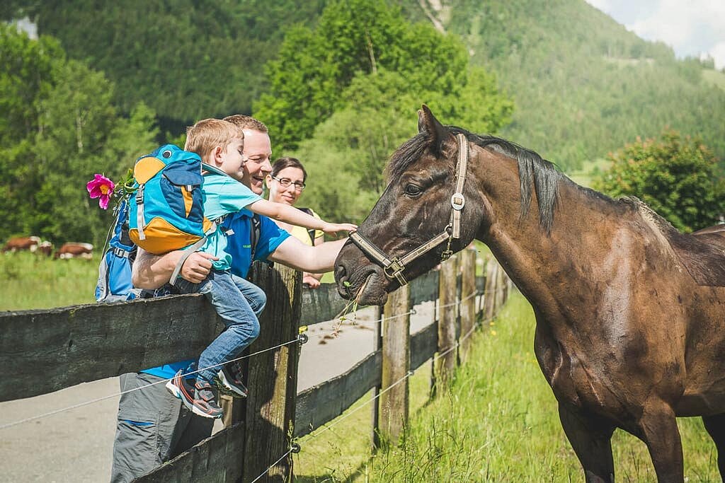 Im Familotel Landgut Furtherwirt kommen alle Tierfreunde auf ihre Kosten. Auf dem eigenen Bio-Bauernhof haben viele Tiere wie Kühe, Pferde und Ponys ihr Zuhause. Der Juniorchef Wolfgang Hagsteiner führt den Bio-Bauernhof mit Vieh- und Pferdezucht, Milcherzeugung und Weidewirtschaft mit voller Hingabe. Und das Beste: In der Hotelküche werden die Produkte aus eigener Erzeugung verarbeitet. Das ist Urlaub auf dem Bauernhof!