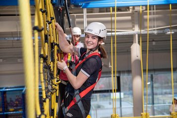Auf dem zweistöckigen Indoor-Spielplatz könnt ihr um die Wette rutschen und klettern.