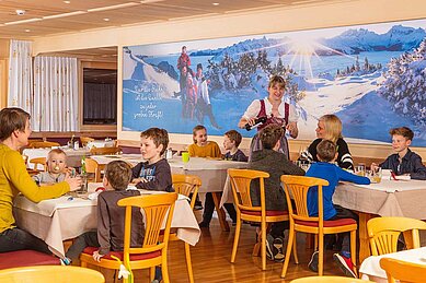 Kinderbetreuung im Familienhotel Sonne Bezau heißt: mit den Kindern spannende Zeiten verbringen, gemeinsam die Natur erkunden und der Kreativität freien Lauf lassen. Das Spielzimmer in der Sonne Bezau lässt alle Kinderaugen leuchten. Mindestens 35 Stunden pro Woche können eure Kinder hier im Alter von drei bis zwölf Jahren puren Freizeitspaß und spannende Abenteuer in der Kinderbetreuung erleben.